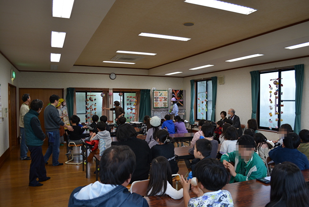 会場には、手作りのさげもんが飾られて、